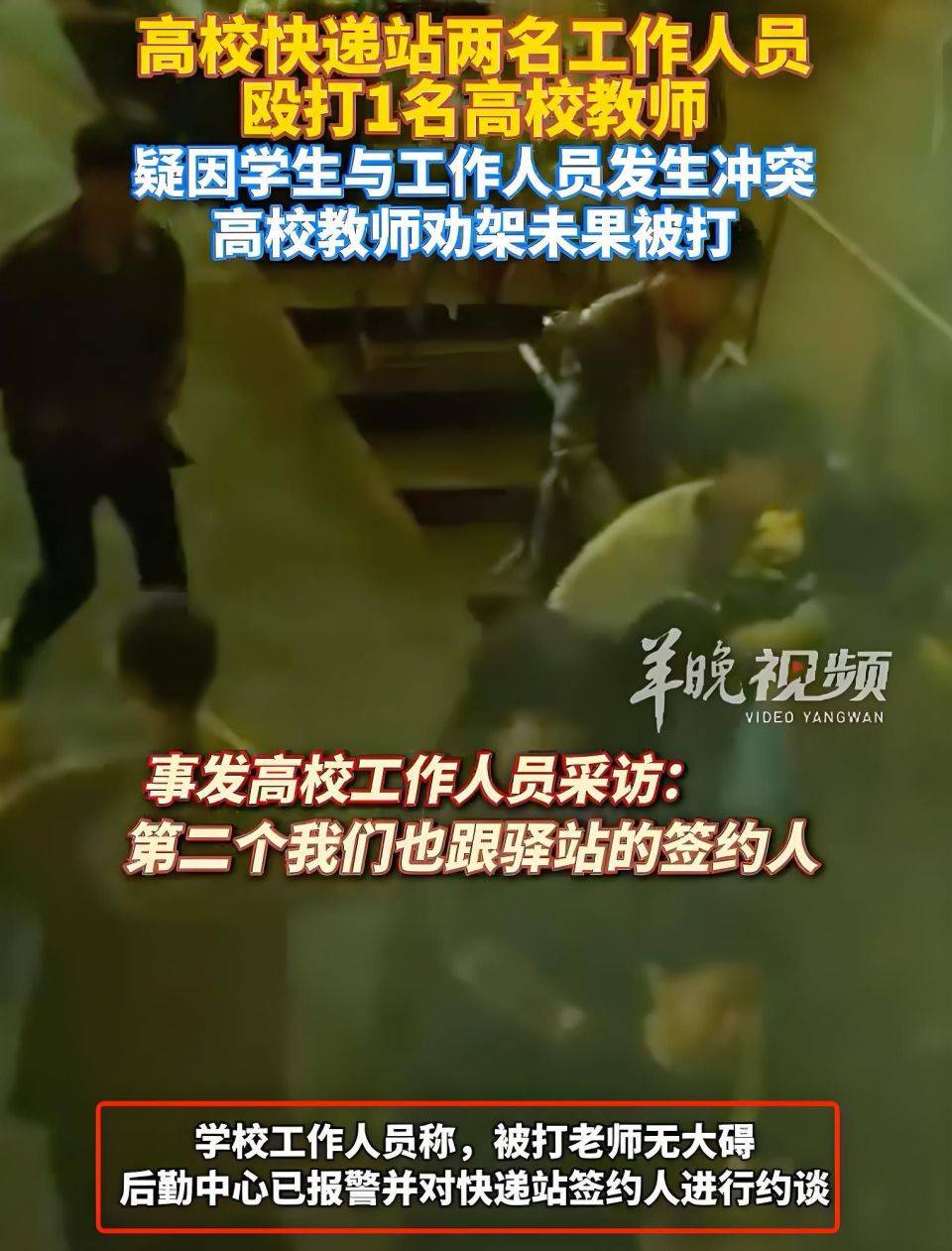 最近,在长沙的一所大学的校园里发生了一场愤怒的事件:一名老师被两名快递员工殴打,因为他们鼓励了学生和快递站之间的误解。这个场景发生在校园里,您在那里教和回答问题,这令人心碎。事件审查:老师鼓励战斗成为受害者。据证人学生说,事件的原因是特快车站负责人对学生有争议。当他看到这一点时,一位老师向前迈进鼓励他,试图平息误解。但是,善良没有得到回报,鼓励战斗的老师成为暴力的目标。我们不知道现场,但是人们认为应修复的校园环境在这种暴力行为中受到损害。见证人是他们受到尊敬的老师,他们像这样受到对待,可以想象心理阴影。学校回答:inci之后学校工作人员向警察打电话并采访承包商时,被殴打的老师没有受到严重伤害,后勤中心叫警察,并在Express Station采访了承包商。 “老师没有受到严重伤害”可能是伪装的祝福,但是在心理创伤中可以消除身体“没有严重伤害”吗?应该认识到学校对警察和采访的快速呼吁,但更重要的是如何防止事件再次发生。深入思考:谁在校园内检查第三方服务?这一事件使我们思考了一个更遥远的问题:在Unib的《物流社会化》的背景下,谁检查进入校园的第三方服务?作为校园生活的重要组成部分,表达服务应为教师和学生提供舒适感。但是校外人员攻击呢?谁应该检查他们的阈值质量?谁监督s一天 - 日期行为?类似的事件不是孤立的情况。近年来,随着大学和大学继续引入社会服务,校园安全之间的冲突,食堂员工,超市员工等,以及老师和学生经常发生。我们不禁要问:我们的校园环境安全吗?校园应该是纯粹的土地,教师和学生的尊严不得受到侵犯。学校是一个教书和标记的人的地方,这应该是纯粹的土地。作为知识渊博的知识,教师应受到整个社会的尊重。不管是什么原因,对教师的暴力行为都不受文明社会的注意。这一事件不仅是老师的个人经历,而且是整个校园文明的挑战。如果无法保证教师的人身安全,那么我们如何期望学生在安全和尊重的环境中成长?期望:我们不仅应该处理个别案件,而且我们应该也改进系统。我们希望学校不仅可以正确处理这一事件,还可以检查机构层面的校园第三方服务的管理机制。应建立严格的入境门槛,应加强阳光日的尚未加强,并应提高投诉和退出机制,以确保每个进入校园的服务人员都可以尊重教育,教师和学生。同时,公众期望对这一事件的处理有一个公平而明确的解释。它不仅记得教师的荣誉,而且还记得整个校园生态学的健康发展。我们的校园不需要暴力,需要互相尊重。我希望这一事件可以是一个建设点,并让我们的校园重返真实性质。回到Sohu看看更多
