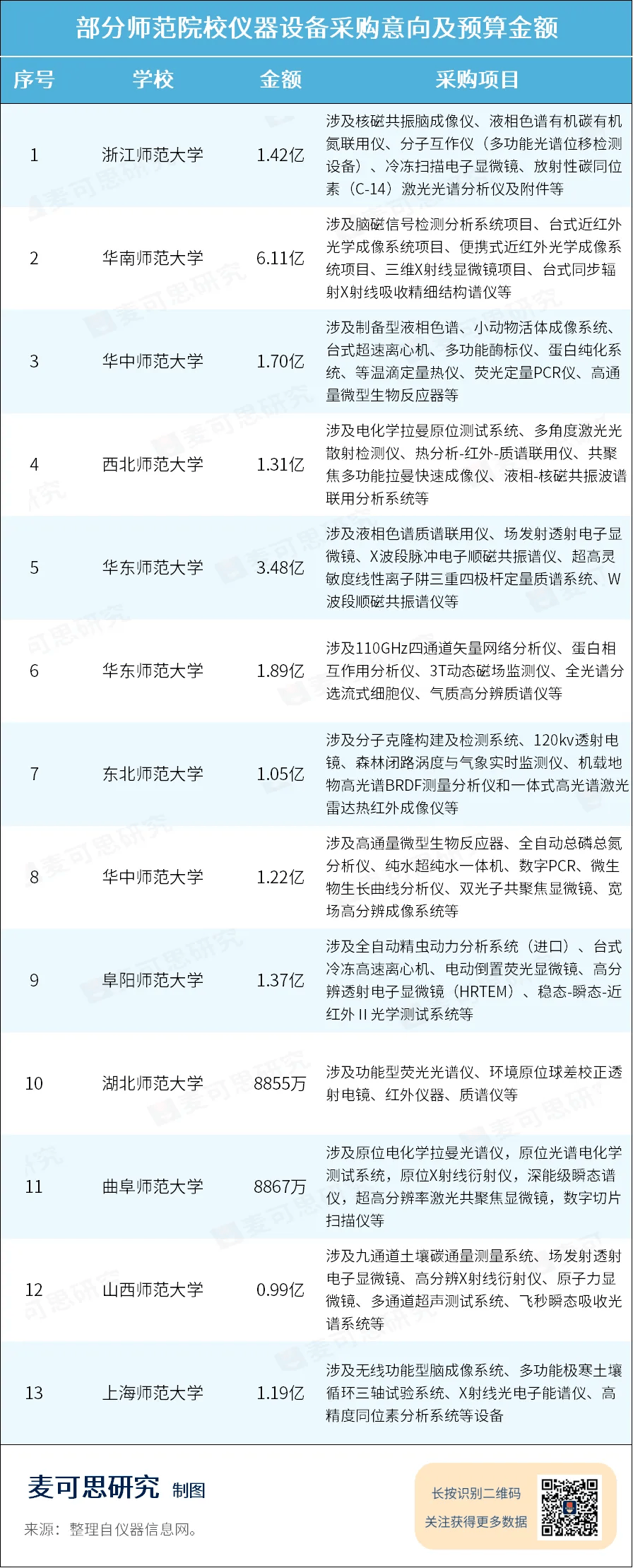 最近,许多普通大学加剧了对设备采购的需求。根据仪器信息网络发布的信息的不完整统计数据,去年有10多家普通大学发布了许多仪器获取目标,其中许多是“大秩序”,预算超过1亿元。中国南部师范大学已发布117个捕获设备的目标,总预算高达61.11亿元,涉及磁力信号检测和分析系统项目,台式近红外光学成像系统,便携式近红外光学成像系统,三维X射线X射线显微镜项目,最近释放了一年级的X射线项目,并在第一个释放了一年的项目中,该项目是第一次释放了一年,该目标是ANTER INSPERITION。 Atotal预算金额为5.37亿元。 matapos ang pag-uuri ng listahan ng pagkuha ng kagamitan sa kolehiyo na ito,ang mga bagong bagong na kagamitan(kabilang ang mga pag update ng kagamitan)ay sumasaklaw sa halos maramihang mga direksyon ng pananaliksik sa paggupit sa paggupit sa larangan ng na ng na ng na ng工程ngayon ngayon,pangunahin ang paghahatid ng kaghahatid ng kamga agham at a gamhay at Myot at Myot在Kemikal NA工程学,环境工程的地球科学,物理学,跨学科研究领域。此外,为了满足与教学和科学研究和促进教育领域的设备更新有关的设备调整标准,广东省发展和改革委员会还批准了今年续签广东二级师范大学和Lilig师范大学的项目。广登普朗第二师范大学购买工具和设备,例如人工智能,生活和健康,新材料,新能源,综合电路和新的文科艺术,共有80个单位(集合),估计总投资87.77万元;普通大学的Ligaw更新了诸如生命和健康,材料和新工程等设备的数量,估计总投资为1.07549亿元。以上所有的都是设备购买费,项目建设资金由两所申请超长特殊财政债券和自筹资金的学校解决。据认为,由于主题的特征,普通大学和大学的预算上限通常处于适度的大学系统水平,并且内部差异很大。尤其是,由于资源较高的希望,Thelocal师范大学和大学通常的预算水平较低。如今展示了他们大力计划新工程的野心。扩展全文